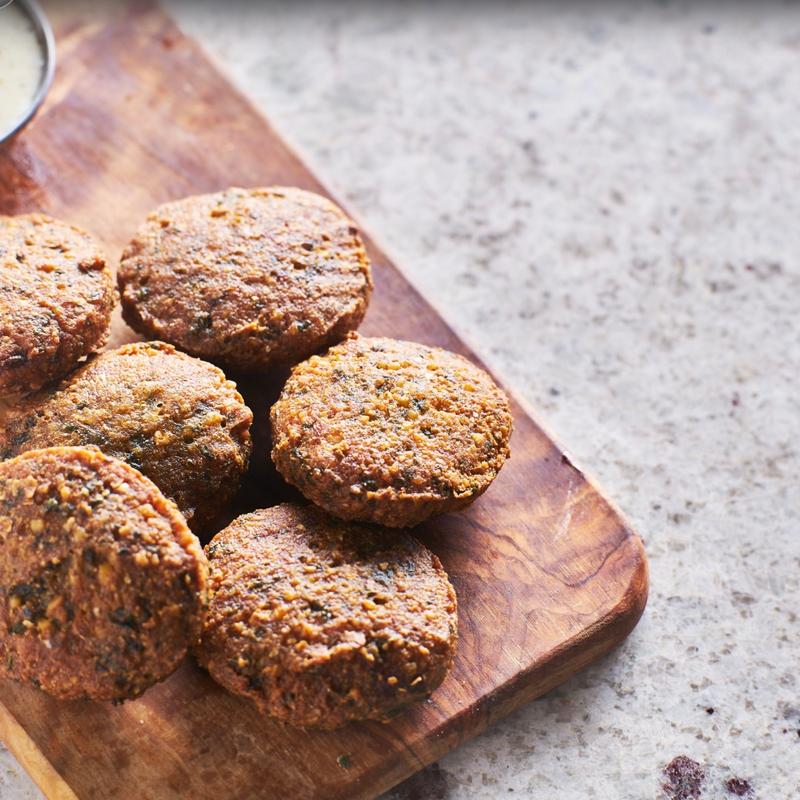 House brand falafel bites, paired with tahini sauce | Cal 500