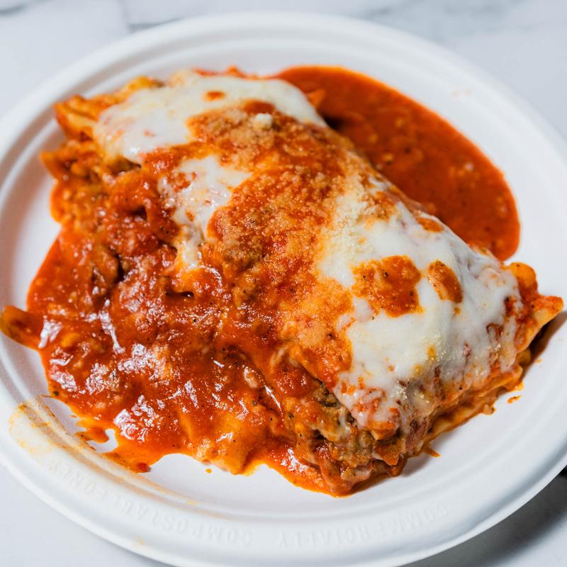 Meatless chick'n hand-breaded with Japanese bread crumbs & spices, Nashville sauce, topped with macaroni pasta tossed in a creamy cauliflower cashew cheese sauce, on a pretzel bun | Make it a wrap (no charge) | Cal 750